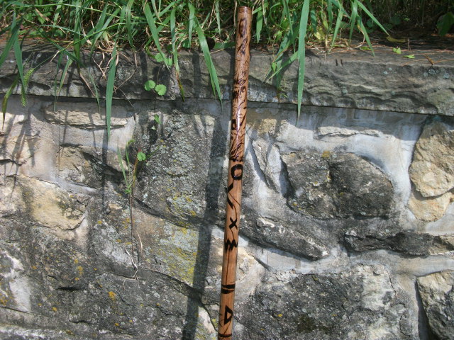 NEW Item!!- Tribal Abstract Wood Burned Walking Stick, approx. 4’5″ X 1.5″ – $70.00